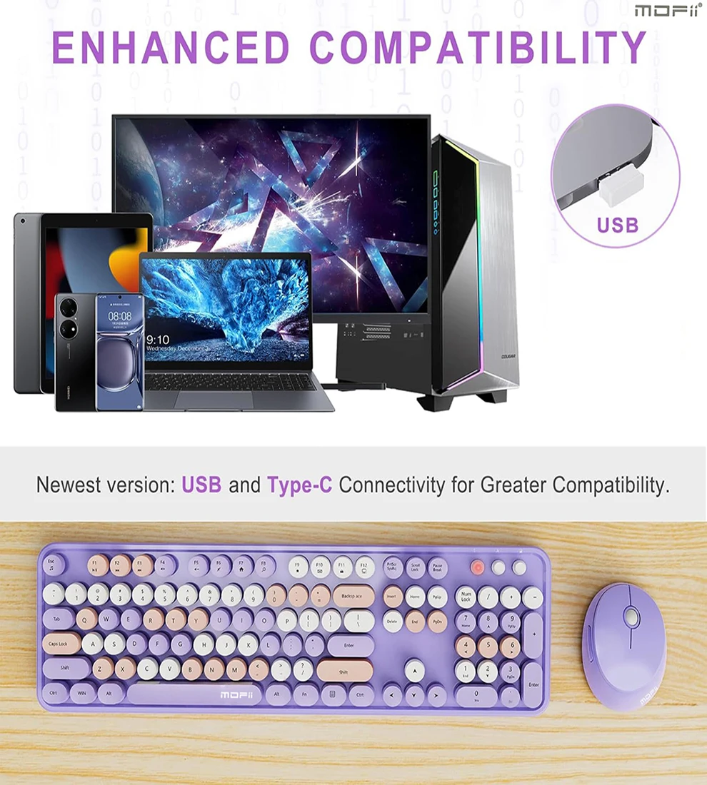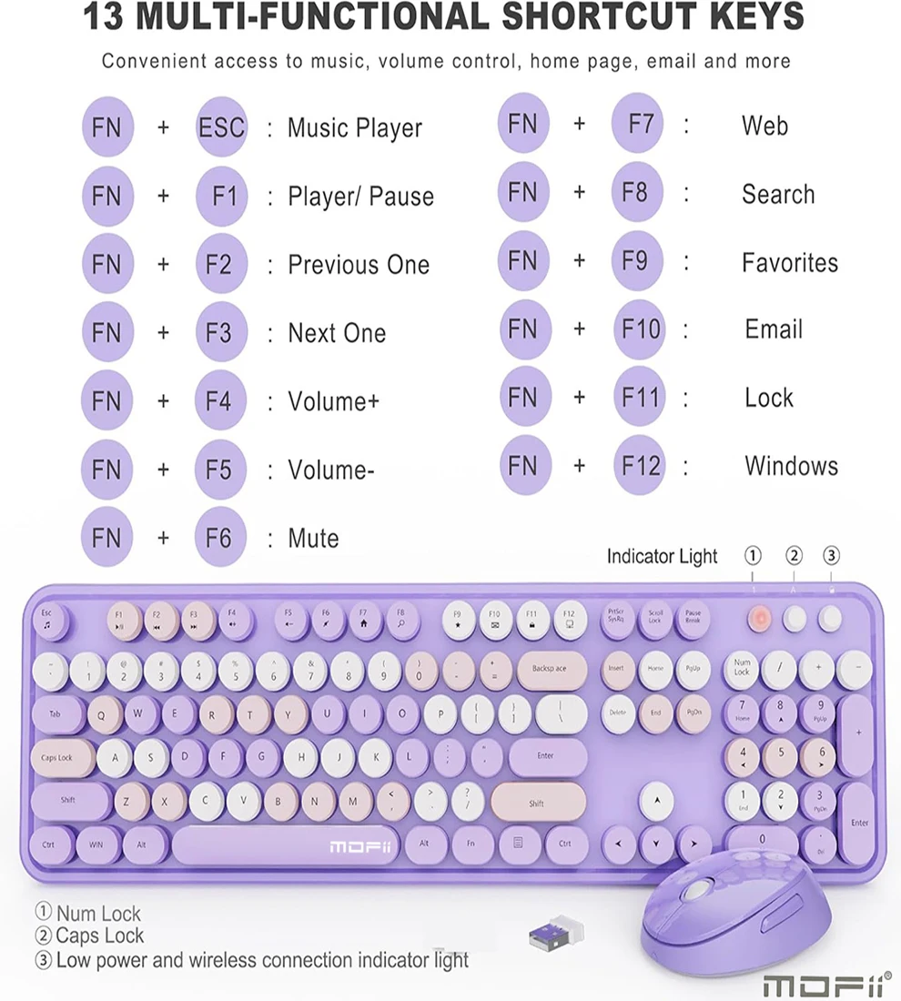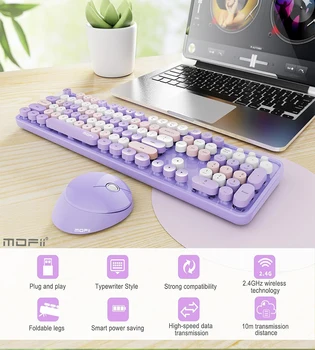 2.4G Wireless Full Size Round Keycap Keyboard Sets wireless Keyboard and Mouse Comb For Home Office Game