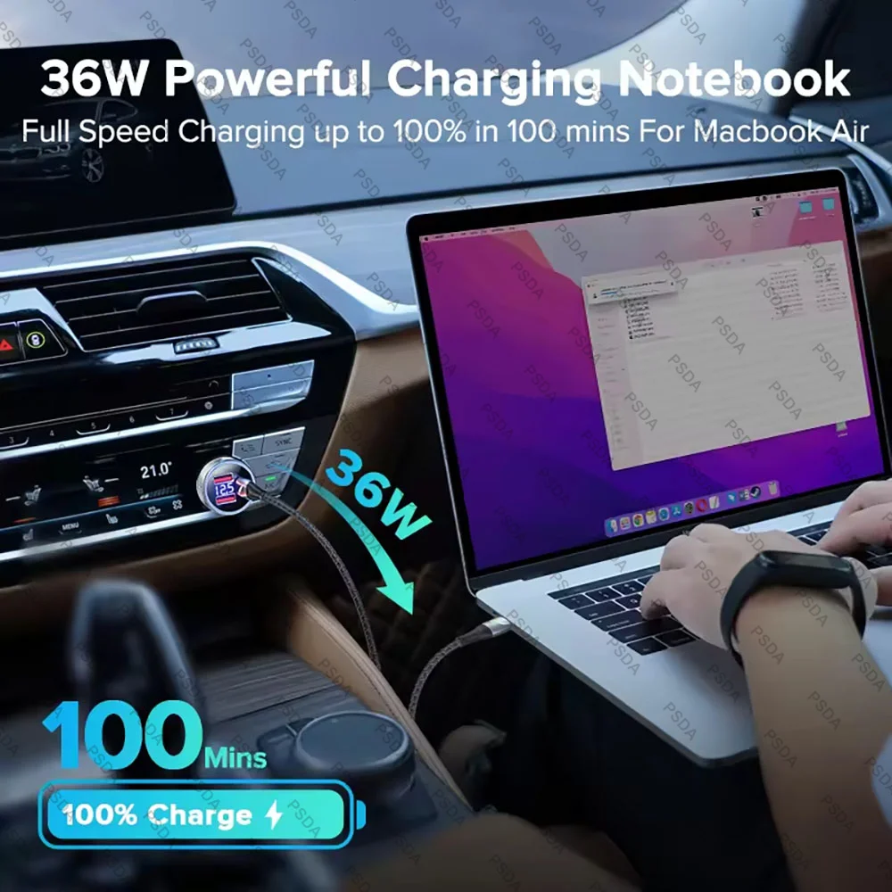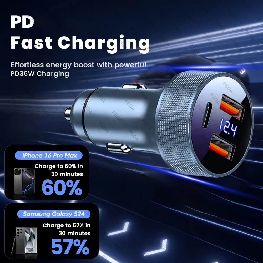 Eonline 72W Car Charger PD USB Type C Dual Port USB Phone Charger Fast Charging for iPhone 16 Xiaomi Samsung iPad Laptops Tablet