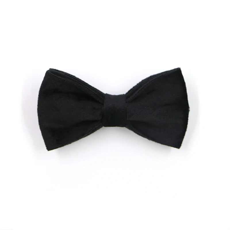 Heyri Pet Supplies Factory Custom Patterns Dog Harness Set Dog Collar Leash Bow Tie Poop Bag Holders Black Velvet Gold Buckle