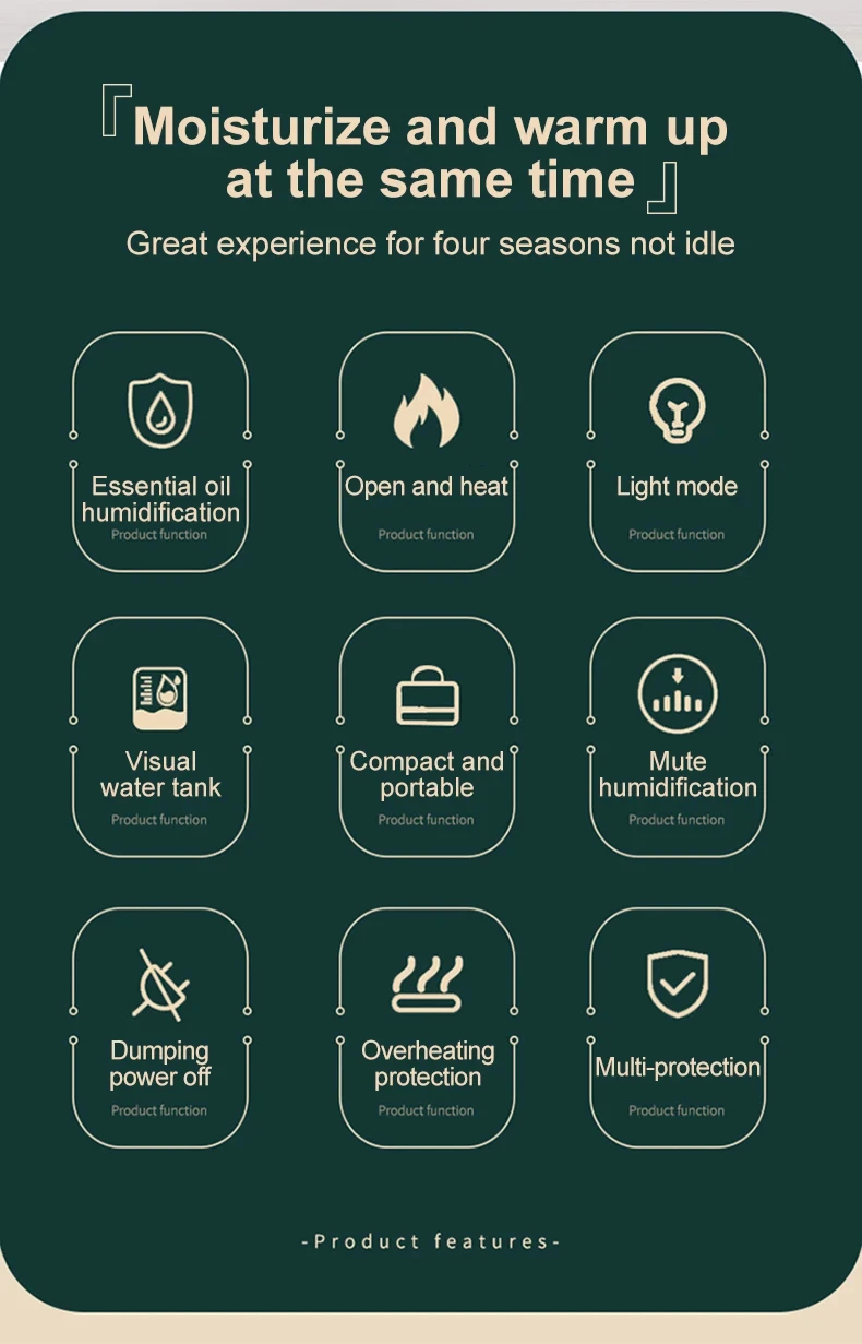 New Portable Desktop Energy Saving Heating Wire Warm Air Blower With Humidifier Aroma Diffuser Handle for Office Bedroom Home